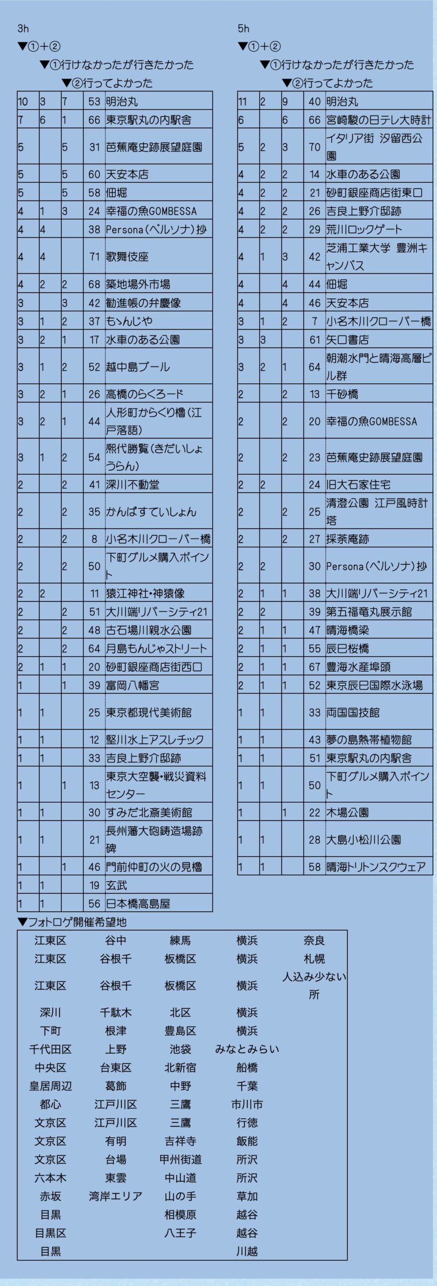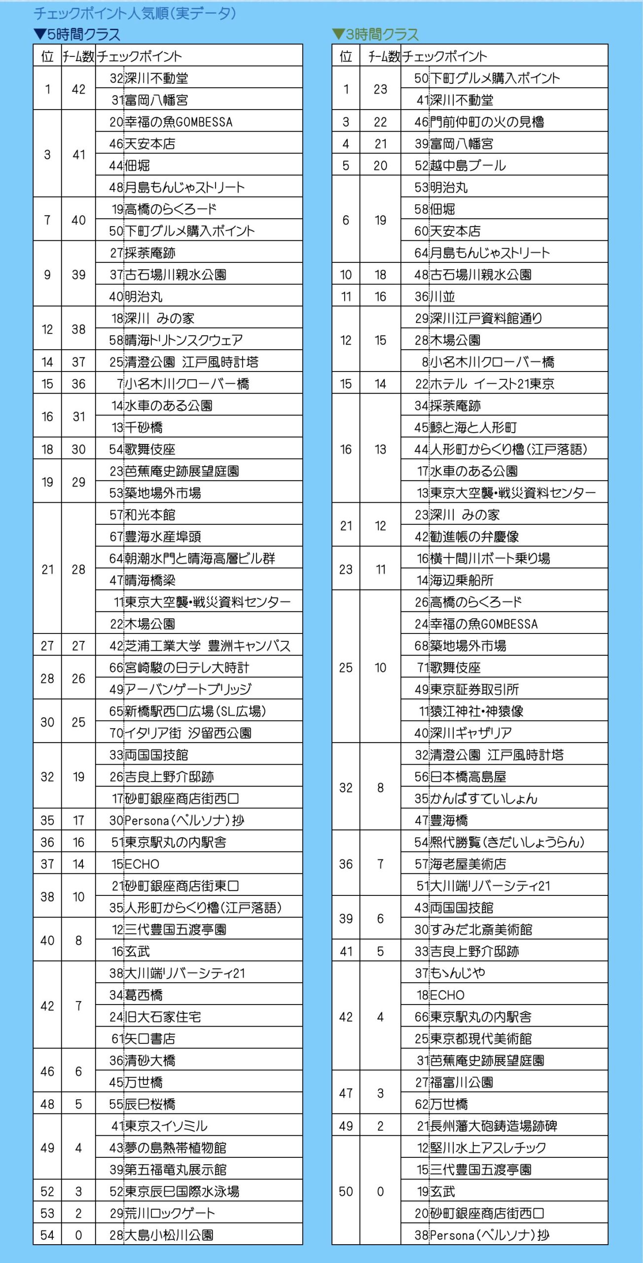 | ○深川をまわりたかったのですが、点数の高い方に行ってしまいました。(山形県50代女性) |